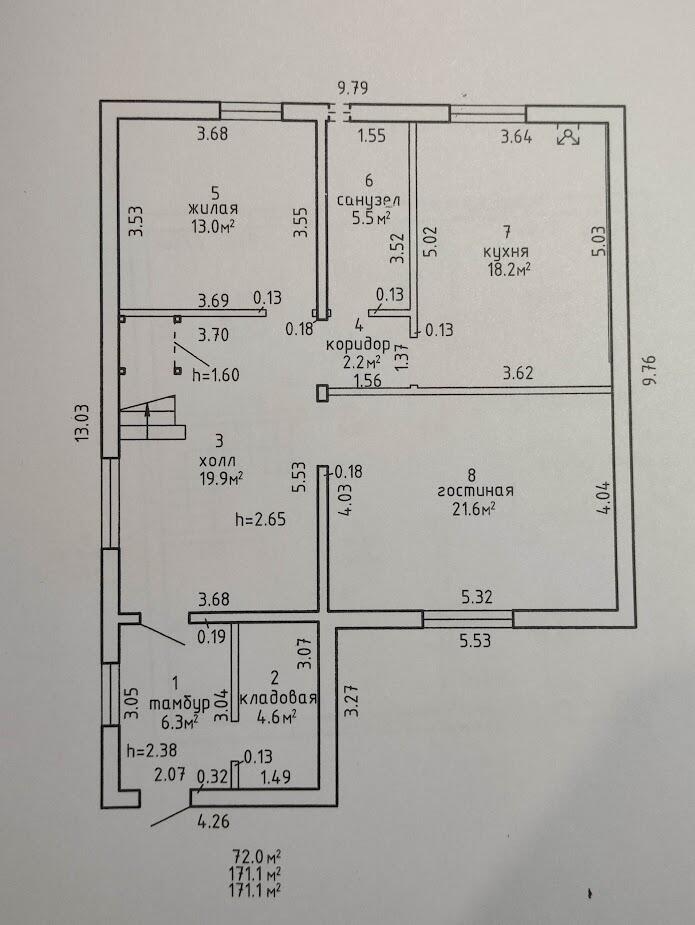 Площадь о/ж/к: 171 / 72 / 18 кв.м.