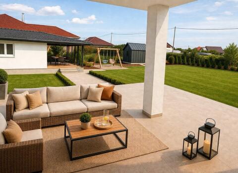 Продуманный, стильный дом, терраса, баня.
