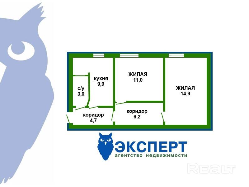 Площадь о/ж/к: 49.7 / 25.9 / 9.9 кв.м.