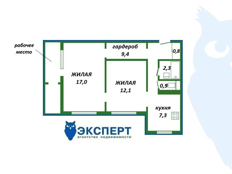 Площадь о/ж/к: 53.8 / 29.1 / 7.3 кв.м.