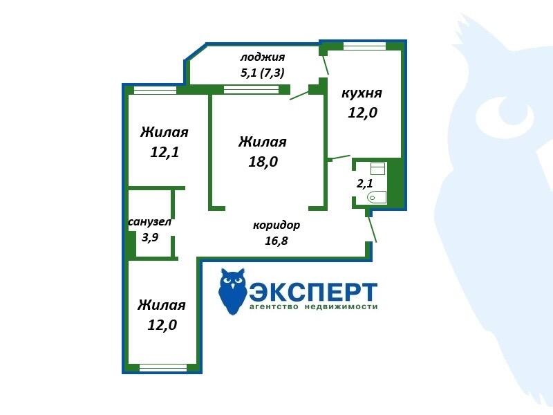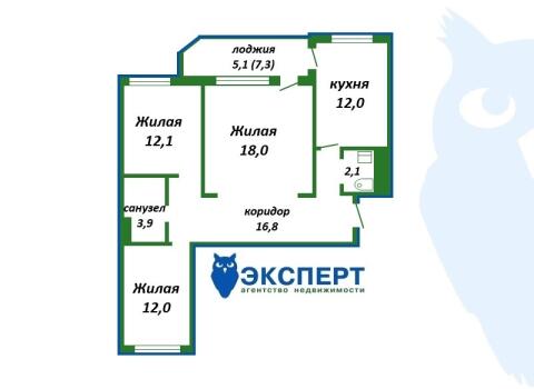 Площадь о/ж/к: 82 / 42.1 / 12 кв.м.