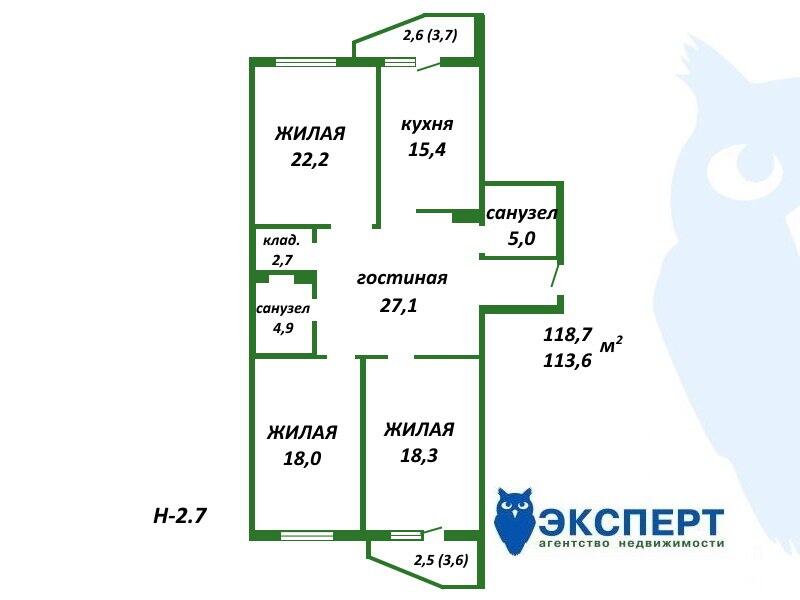 Площадь о/ж/к: 118.7 / 113.6 / - кв.м.