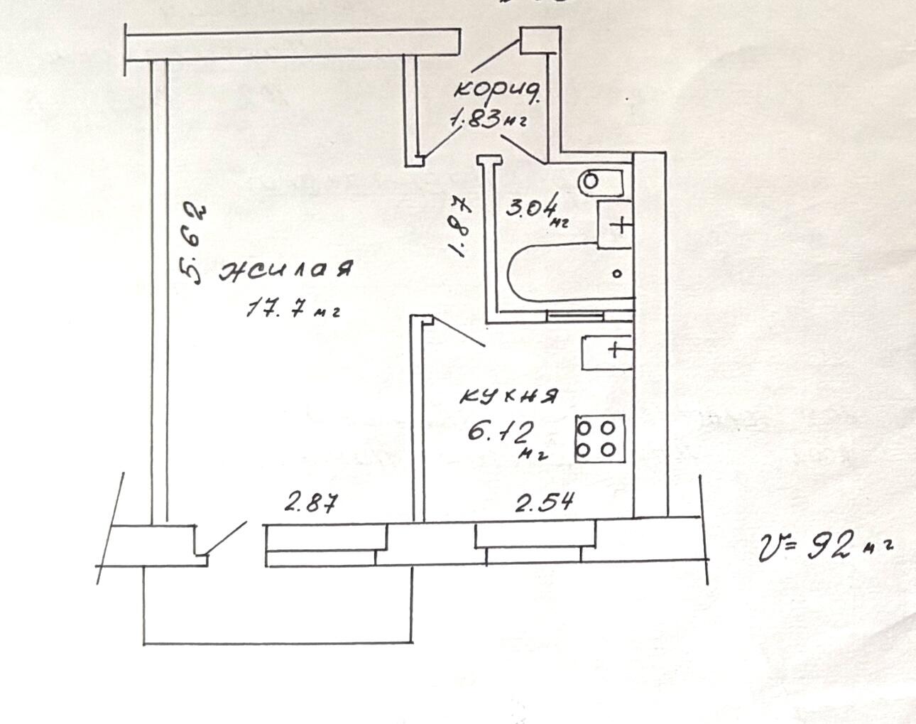 Площадь о/ж/к: 28.69 / 17.7 / 6.2 кв.м.