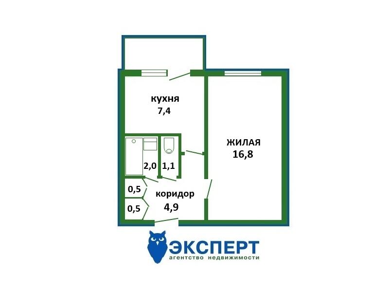 Площадь о/ж/к: 33.2 / 16.8 / 7.4 кв.м.
