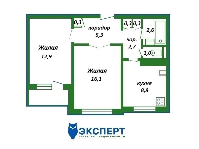 Площадь о/ж/к: 51 / 29 / 9 кв.м.