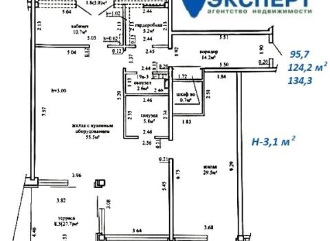 Площадь о/ж/к: 134.3 / 100 / - кв.м.