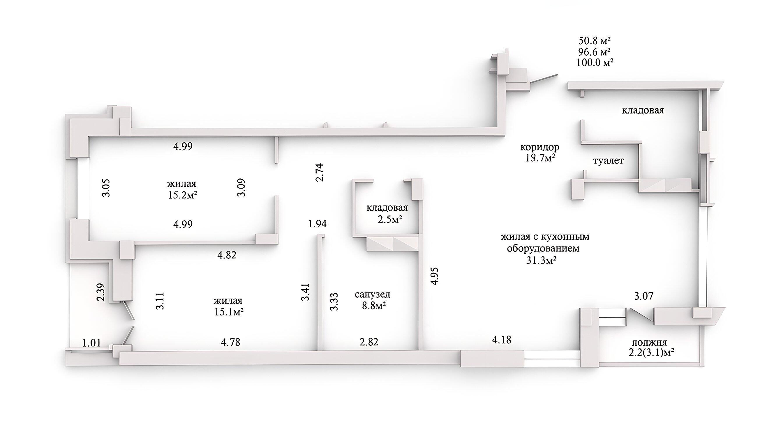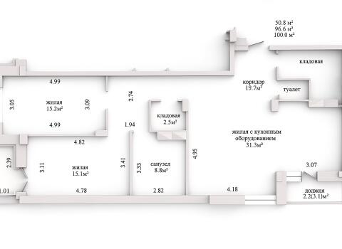 Площадь о/ж/к: 100 / 50.8 / - кв.м.