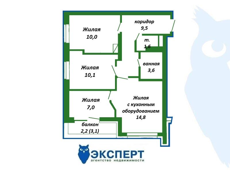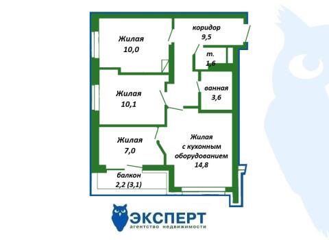 Площадь о/ж/к: 58.8 / 41.9 / 14.8 кв.м.