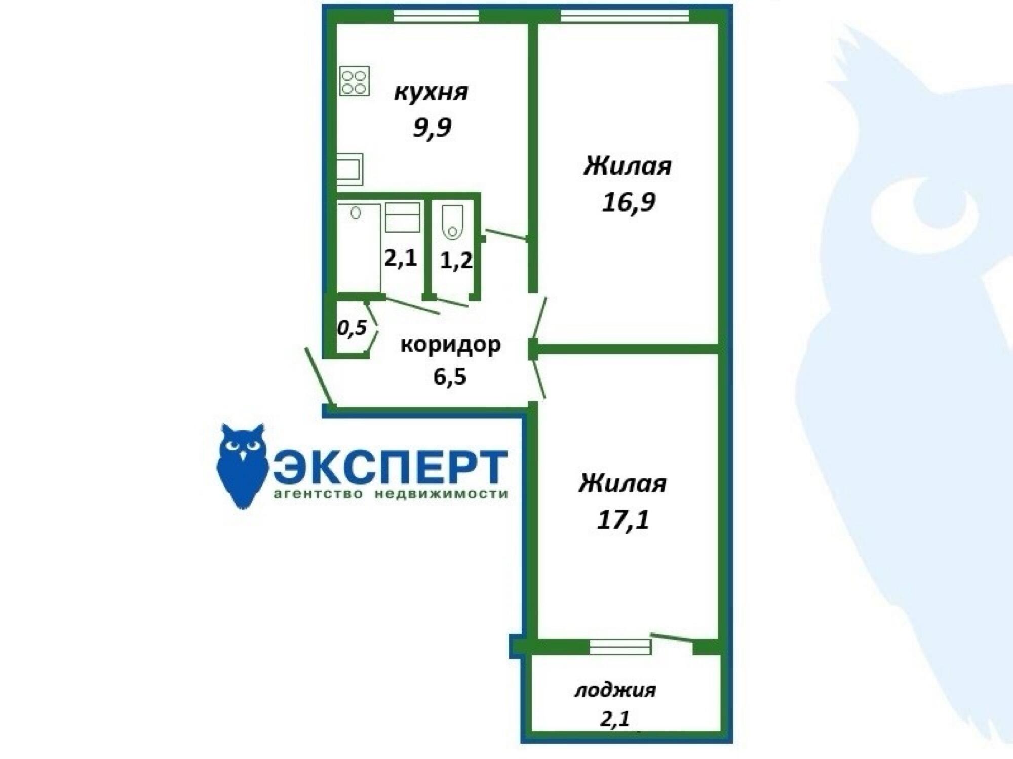 Площадь о/ж/к: 56.3 / 34 / 10 кв.м.