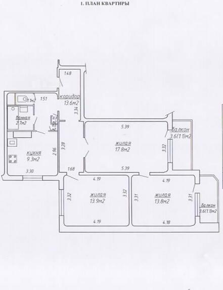 Площадь о/ж/к: 72.7 / 45.5 / 9.3 кв.м.