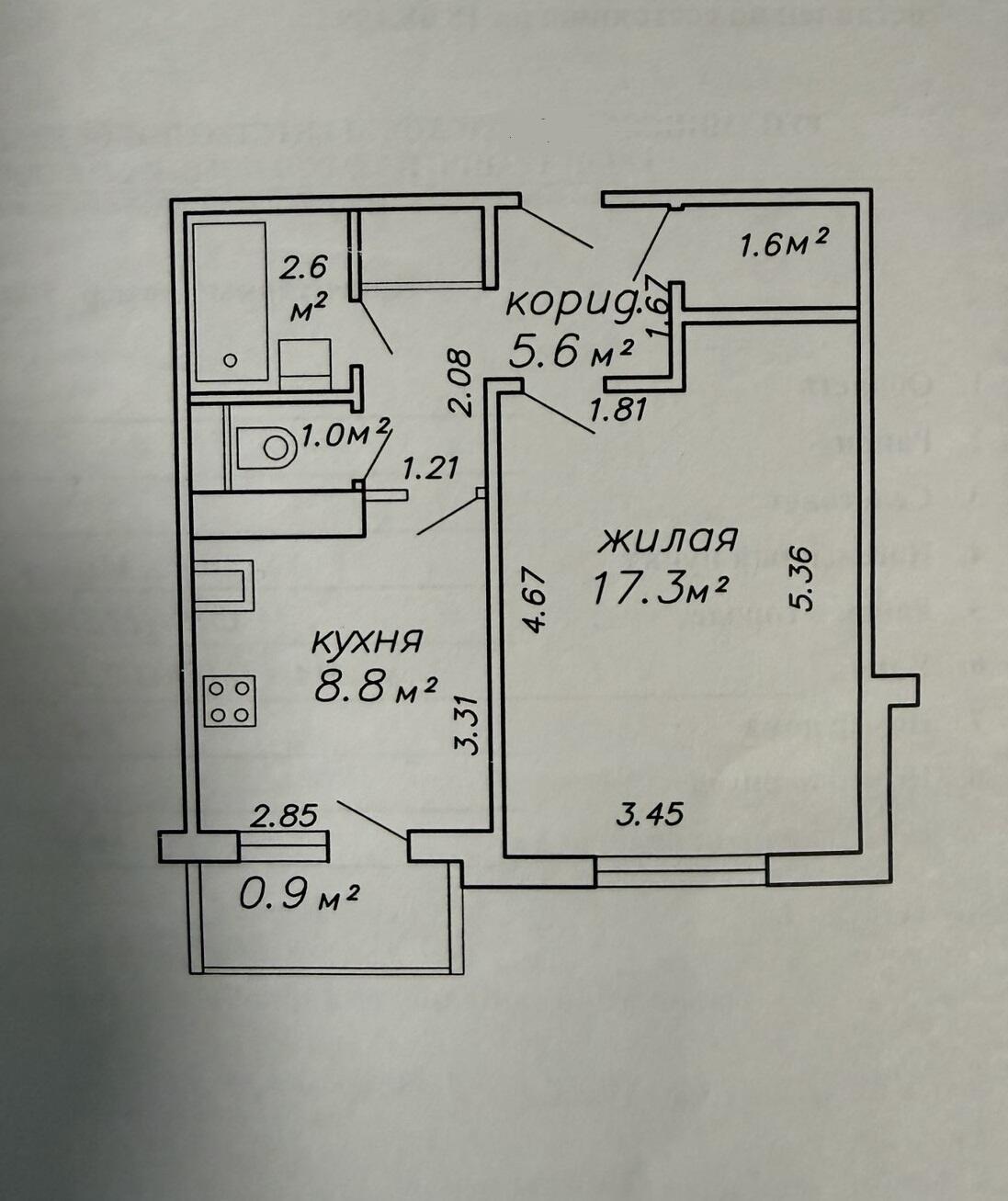 Площадь о/ж/к: 37 / 17 / 9 кв.м.