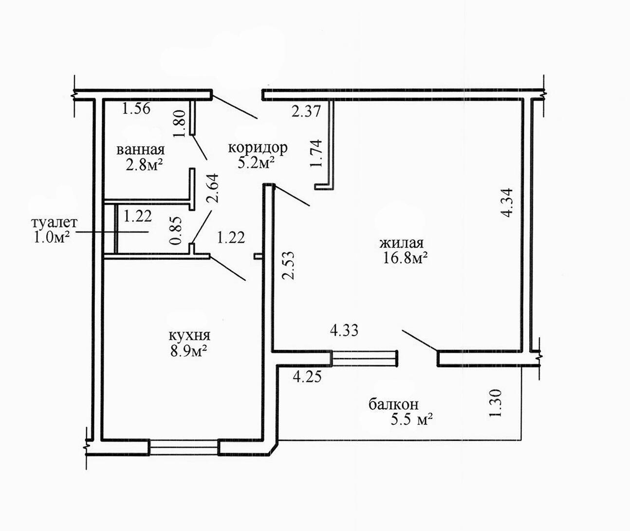Площадь о/ж/к: 36.4 / 16.8 / 8.9 кв.м.
